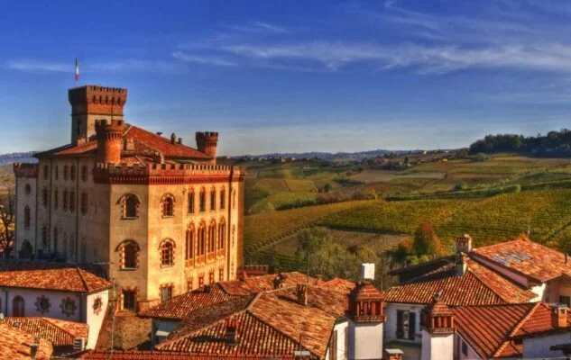 Village emblématique du vin, avec la célèbre cave Gaja et une tour offrant une vue imprenable sur les vallées environnantes.
